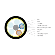 ADSS cable is loose tube stranded. The 250um bare fibers are positioned into a loose tube made of high modulus plastics. The tubes are filled with a water-resistant filling compound. The tubes and fillers are stranded around a FRP (Fiber Reinforced Plastic) as a non-metallic central strength member into a compact and circular cable core.