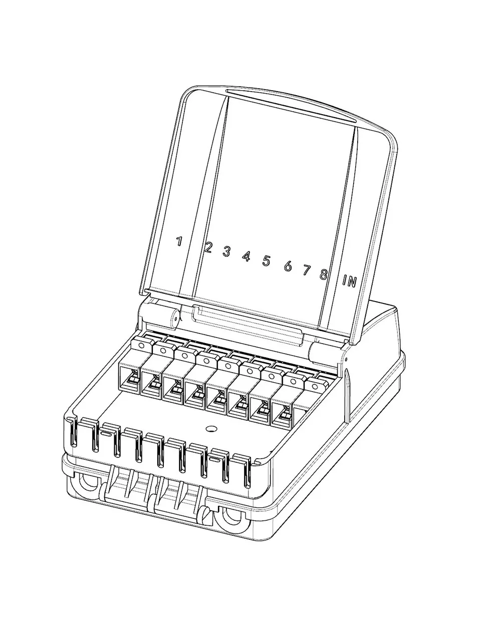 It carries out optimized fiber management for riser cable and 8 fibers distribution in P2P network or 8 fibers splitting in P2MP PON network, and serves 8 subscribers.