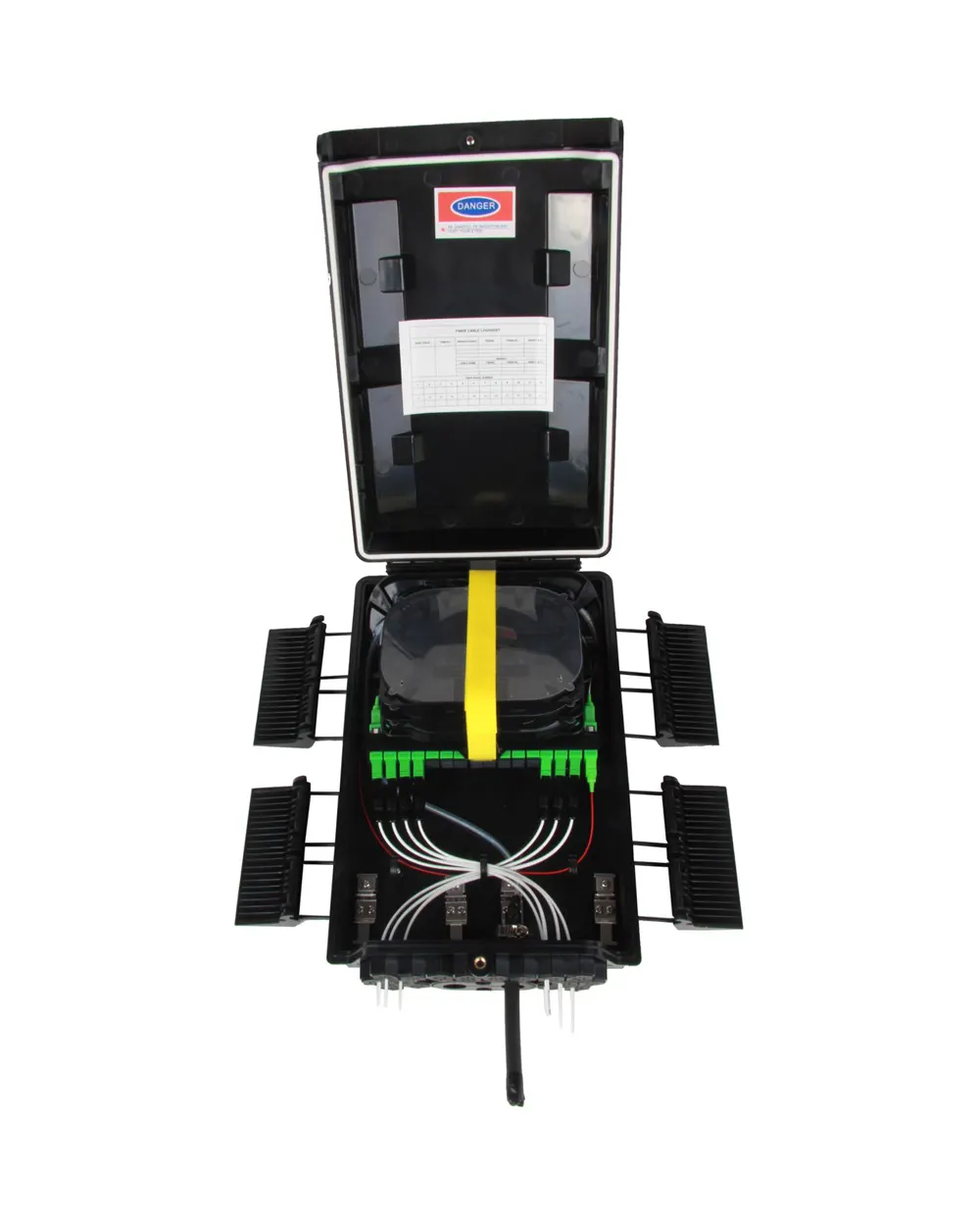 AT-ODB-16D Fiber Terminal Box FTB integrates fiber cable fixation, storage, splicing and distribution in an outdoor and indoor wall mounting and outdoor pole mounting box.