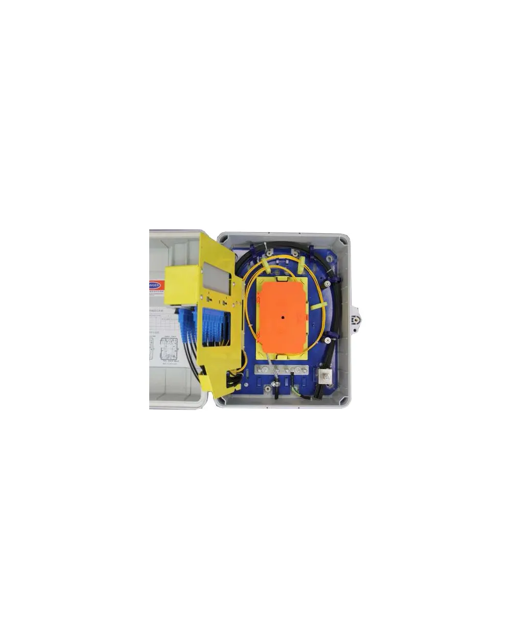 Optical Splitter Box provides fiber optic cable management for the connection of distribution cables and